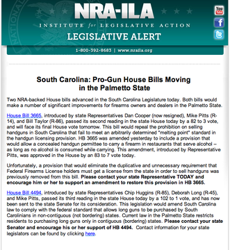 South Carolina: 2013 Session Convenes With Pro-Gun Activity!