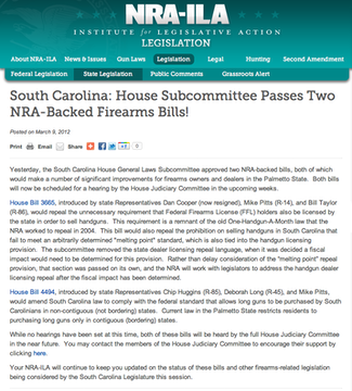 S.C. House Subcommittee Passes Two NRA Backed Bills